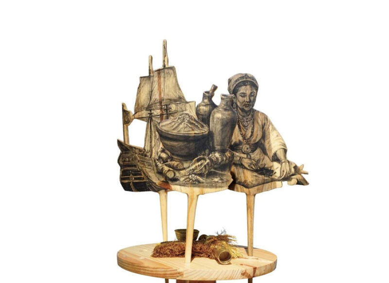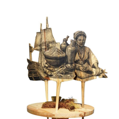 57 x 30 x 30 cm (wooden puppet), 118 x 30 x 30 cm (pedestal)