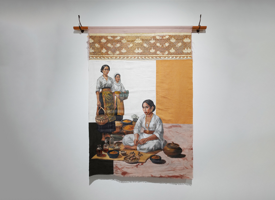 Acrylic on dyed fabric