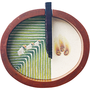 Acrylic on canvas, shaped wood