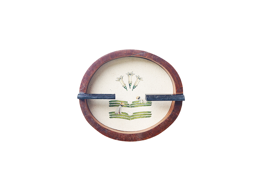 Acrylic on canvas, shaped wood