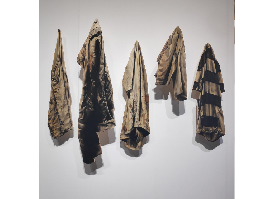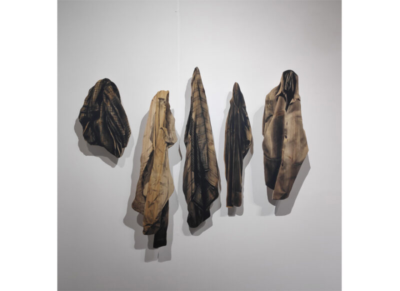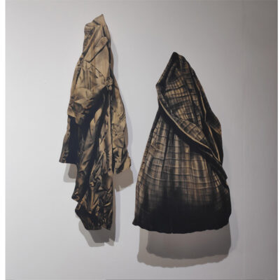 Charcoal on shaped wood